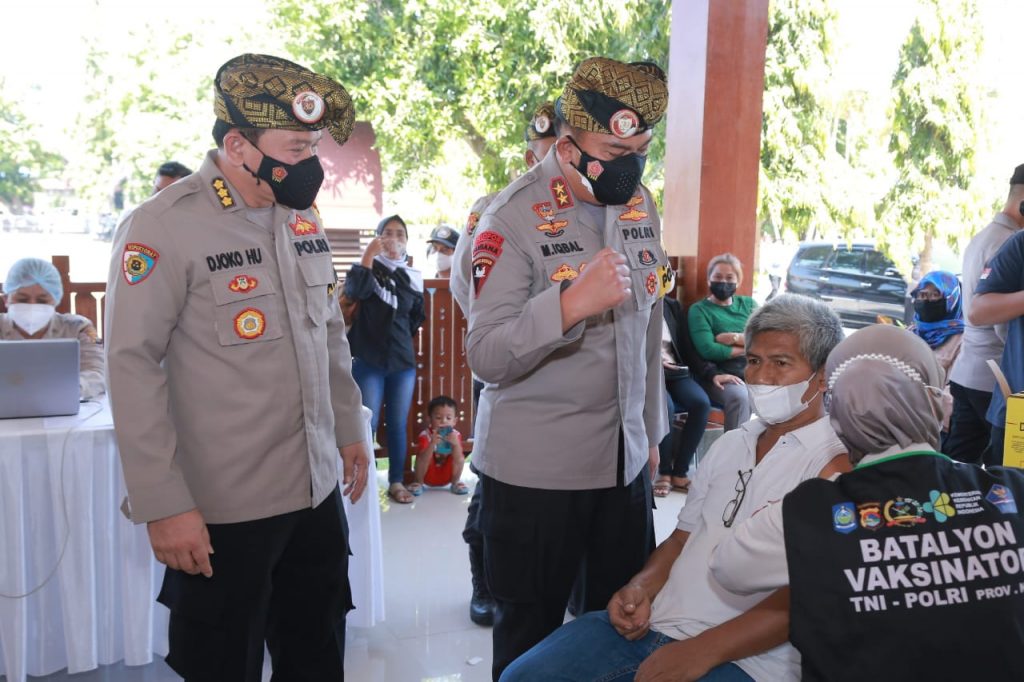 Kapolda NTB Irjen Pol Mohammad Iqbal S.I.K MH didampingi Irwasda dan beberapa Pejabat Utama (PJU) Polda NTB datang meninjau pelaksanaan Vaksinasi tersebut.
