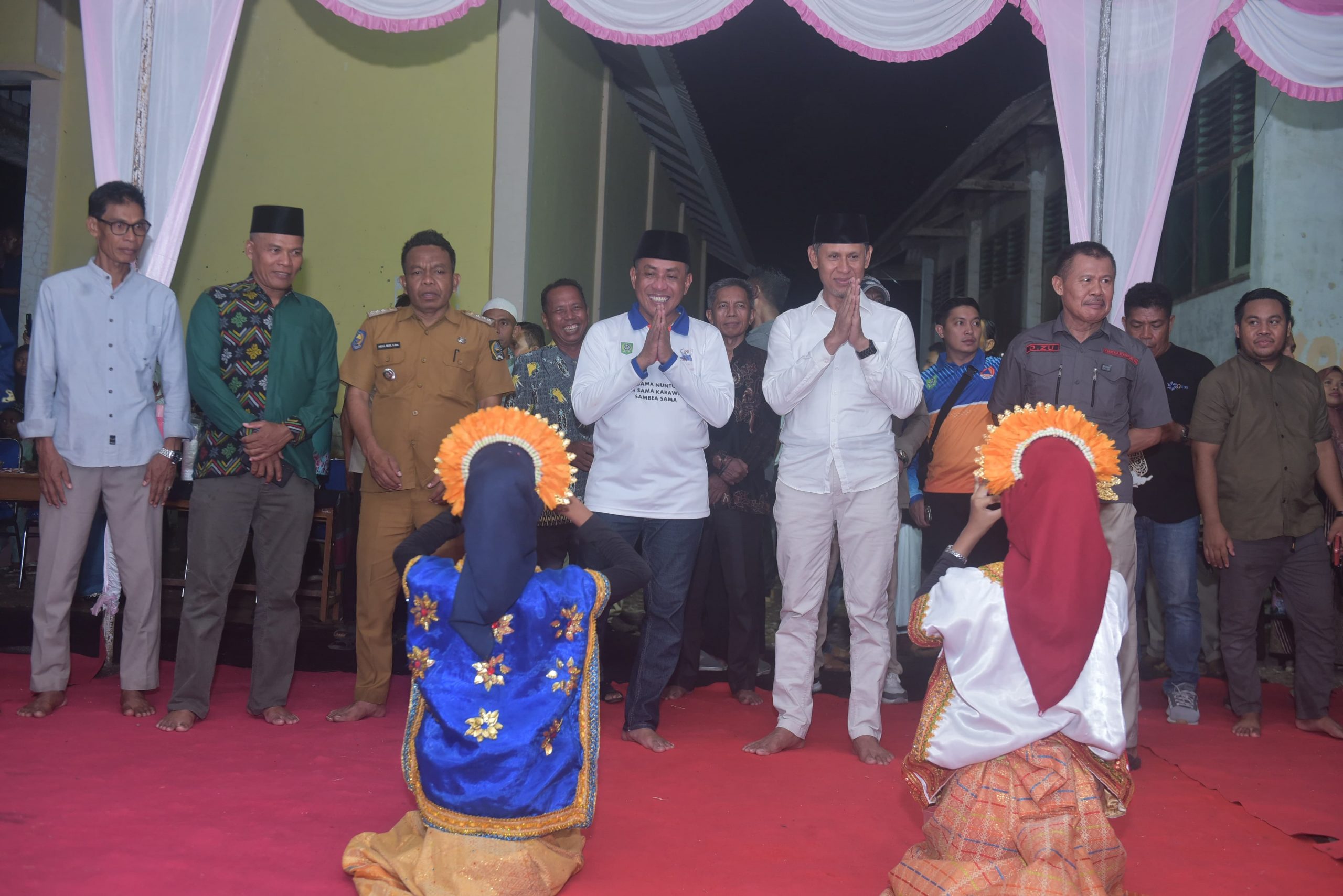 Sebelum memasuki sesi dialog, Bupati, Wakil Bupati dan rombongan disambut Tarian Wura Bongi Monca dari Sanggar Nipa Nae dan Hadrah Cilik tampilan SDN Inpres Mawu dan Tarian dari Sanggar Dana Bura Ambalawi.