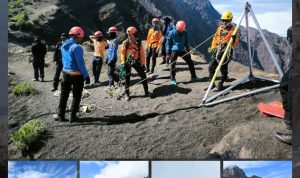 3. Upaya Tim Gabungan saat ini melakukan droping tali dan perlatan lainnya menuju cemara nunggal. Korban terpantau berada pada kedalaman 500 meter.