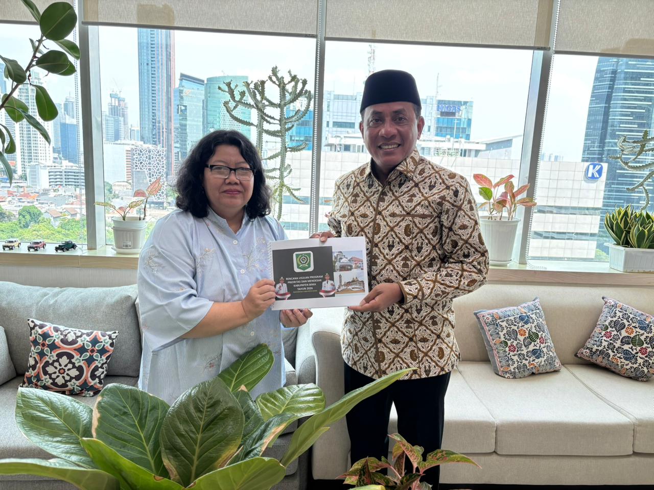 Dalam kunjungan ke kantor Bappenas Jumat (12/12) Bupati dan rombongan diterima oleh Direktur Pembangunan Indonesia Timur, Ika Retna Wulandary.