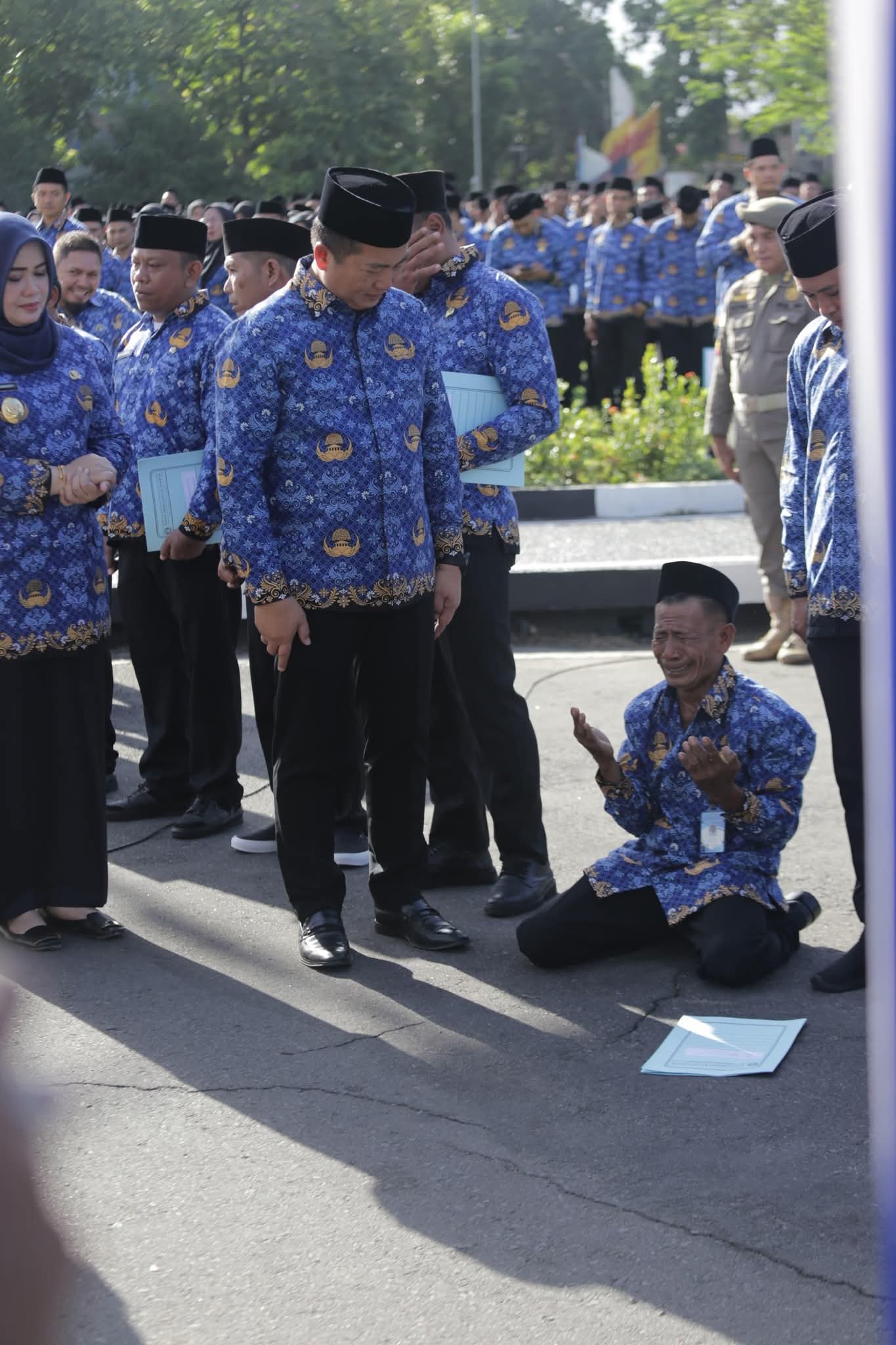 Tidak hanya Munahir yang terharu, para tenaga PPPK Paruh waktu yang baru diambil sumpahnya itupun ikut terharu dan meneteskan airmata melihat Munahir duduk bersujud.
