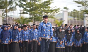 Ia mengingatkan bahwa Apel gabungan ini adalah untuk menyatukan semangat kerja, saat ini masyarakat tidak hanya menilai apa yang Pemerintah kerjakan, tapi bagaimana sikap dan etika dalam melayani, santun ramah tulus dalam melayani adalah bagian dari pengabdian.